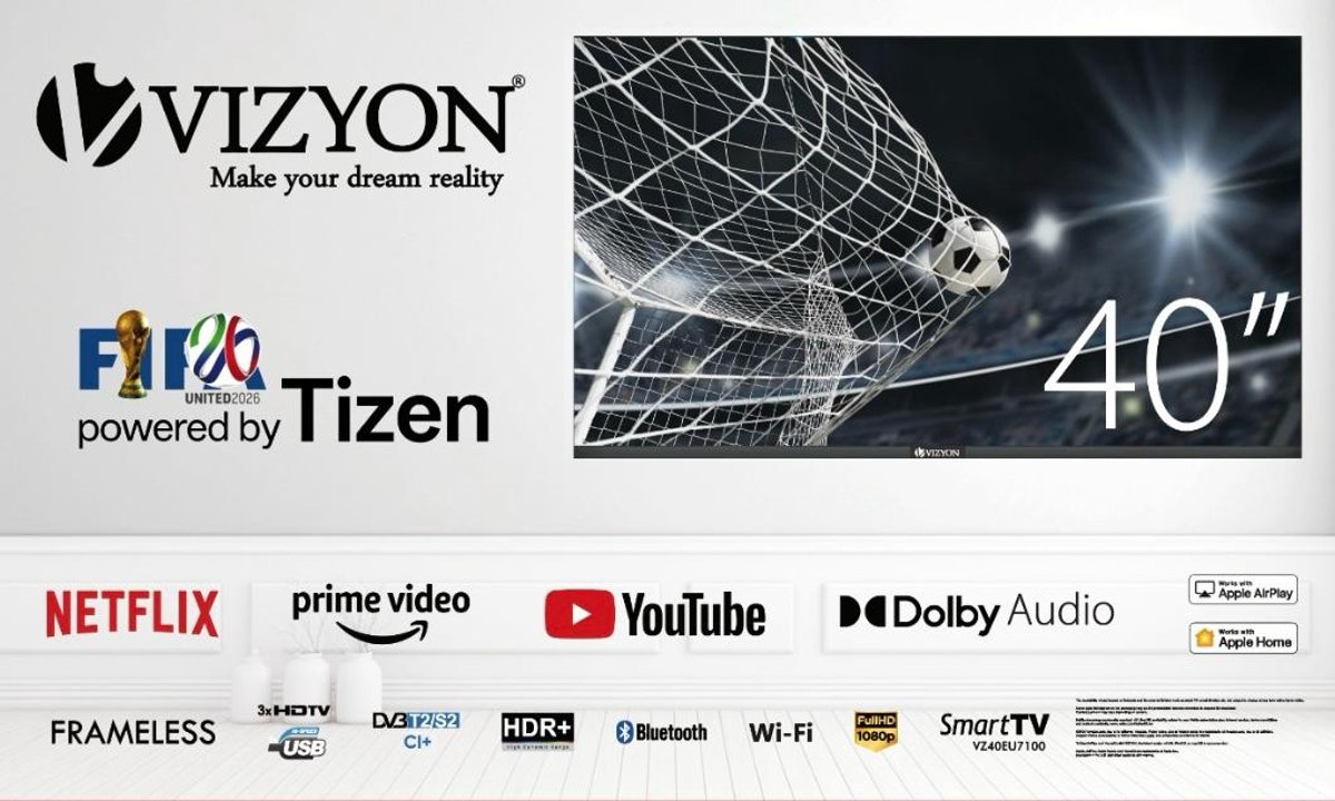 VIZYON 40” Full HD Smart TV – Wi-Fi – YouTube/Netflix – 2×HDMI – 1×USB – Zwart